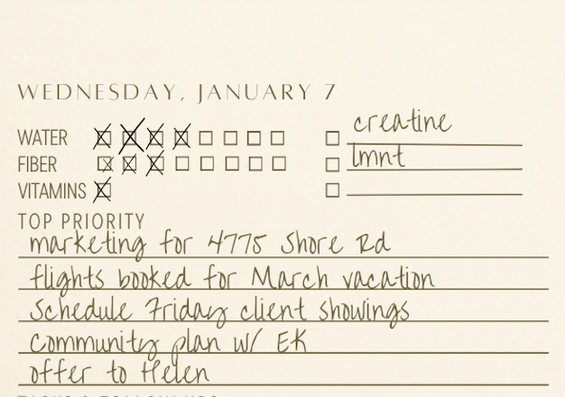 Prioritizing is the key to living a productive life instead of a busy one. In the top priority section, list only the tasks that must get done today. These are your non-negotiables. They'll take the most brain power and should be done first.