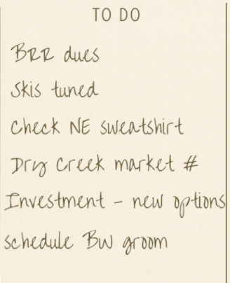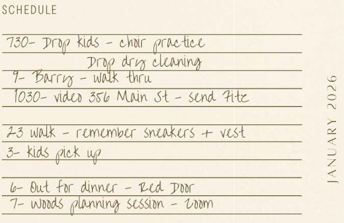 Put anything you need to pick up or drop off here. Slide them into your schedule when time allows or when your on that side of town. Talk about maximum efficiency!